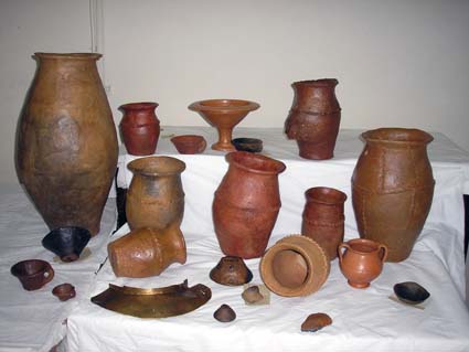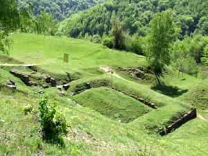 Most of the fortified Dacian settlements in Transylvania have been emptied of their civilian element and only military presence was left to face the Romans. It is not the case for this region. A great number of civilian objects (complete ceramic vessels, jewelry, weaving implements, etc) has been found, proving that the region has not been evacuated as the Roman legions were advancing. Fighting was fierce for control of the region: human skeletons and weapons, both Dacian and Roman (some quite rare) have been found even inside the burned houses on the acropolis.